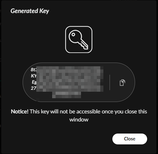 Once generated save the key Secret.