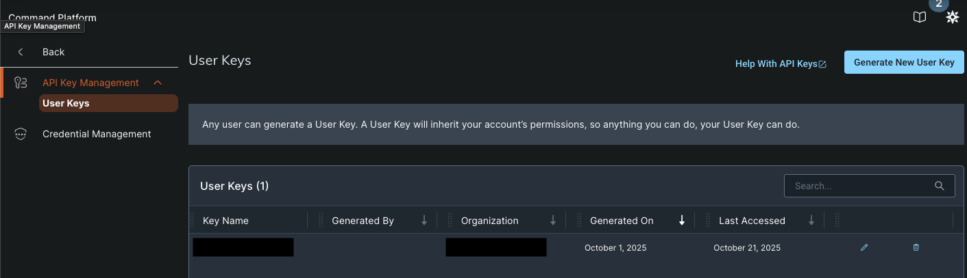 Now the new API Key is created and can be seen in the dedicated page (see point 1)